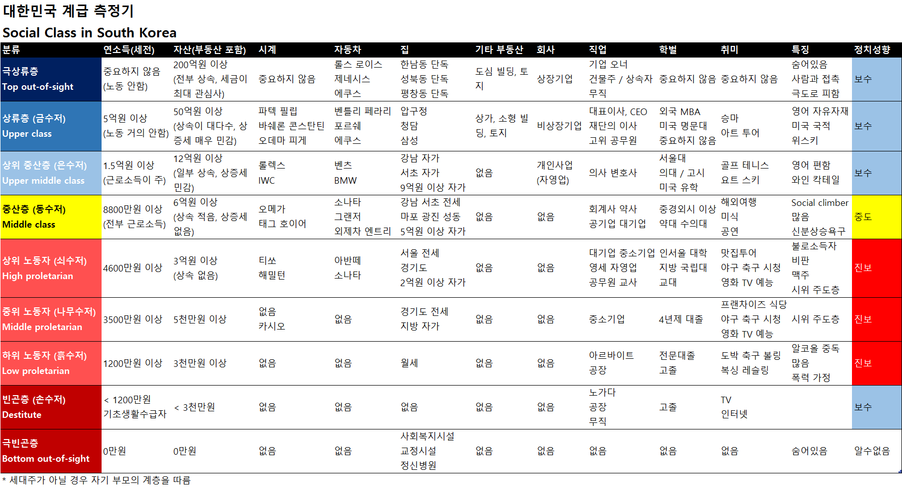요새 인터넷에서 많이 돌아다니는 계급 측정기인데, 꽤 정확하다는 평가로 인기를 끌고 있다.