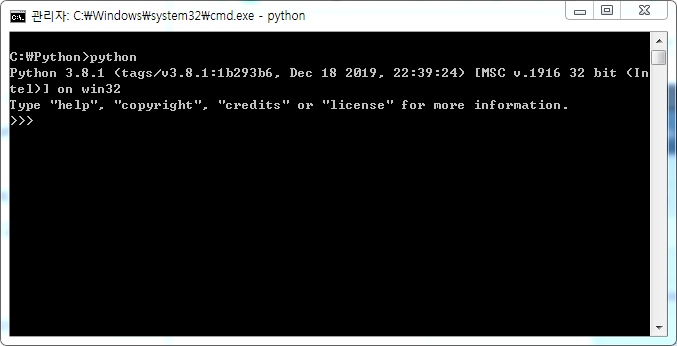 해당 설치경로에서 python 을 실행해서 오류가 나오지 않으면 설치 성공