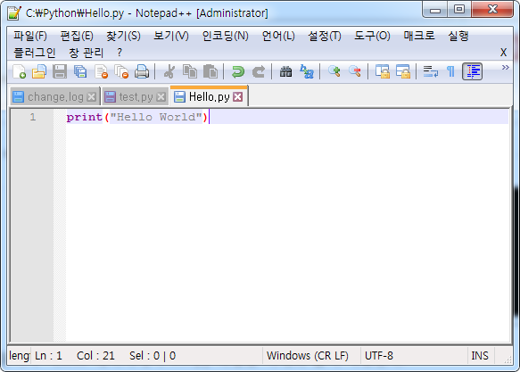 메모장이나 텍스트 에디터에서 test.py 파일을 아래와 같이 작성한다.