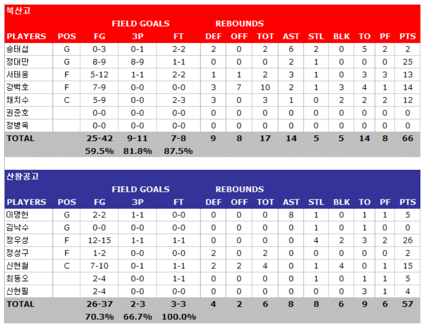 북산고 79점 중 누락된 점수는 13점