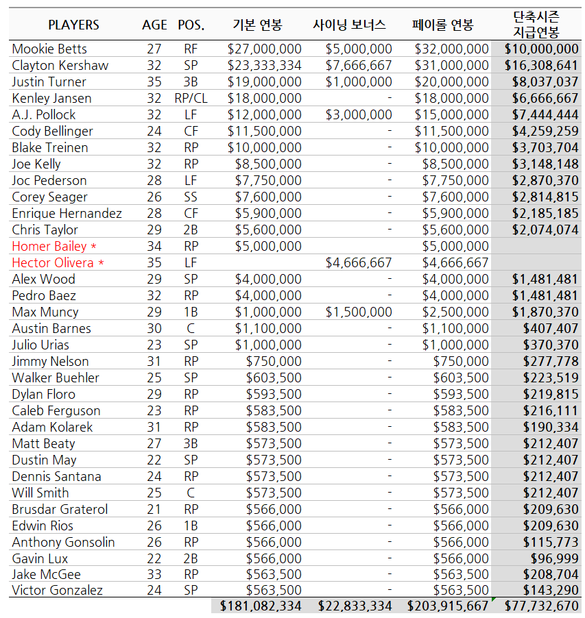 2020년 LA 다저스 페이롤 현황스포츠/야구 2020. 9. 5. 14:13