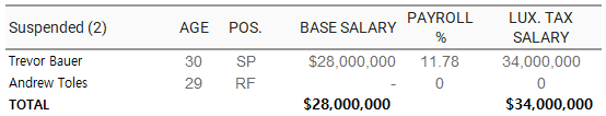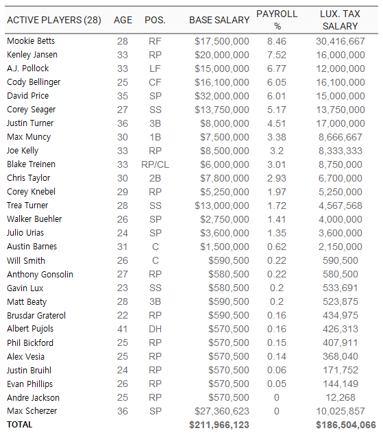 보시다시피, 가장 뼈 아픈 부분은 트레버 바우어가 시즌 절반을 날려 먹었음에도 3400 만 달러의 연봉을 수령해 간 것이고, 클레이튼 커쇼가 부상이 반복되면서 돈값을 제대로 못한 부분도 안타깝습니다.