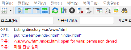 실제로 파일을 업로드 할 때 아래와 같이 "Permission Denied" 에러가 뜰 수 있습니다.
