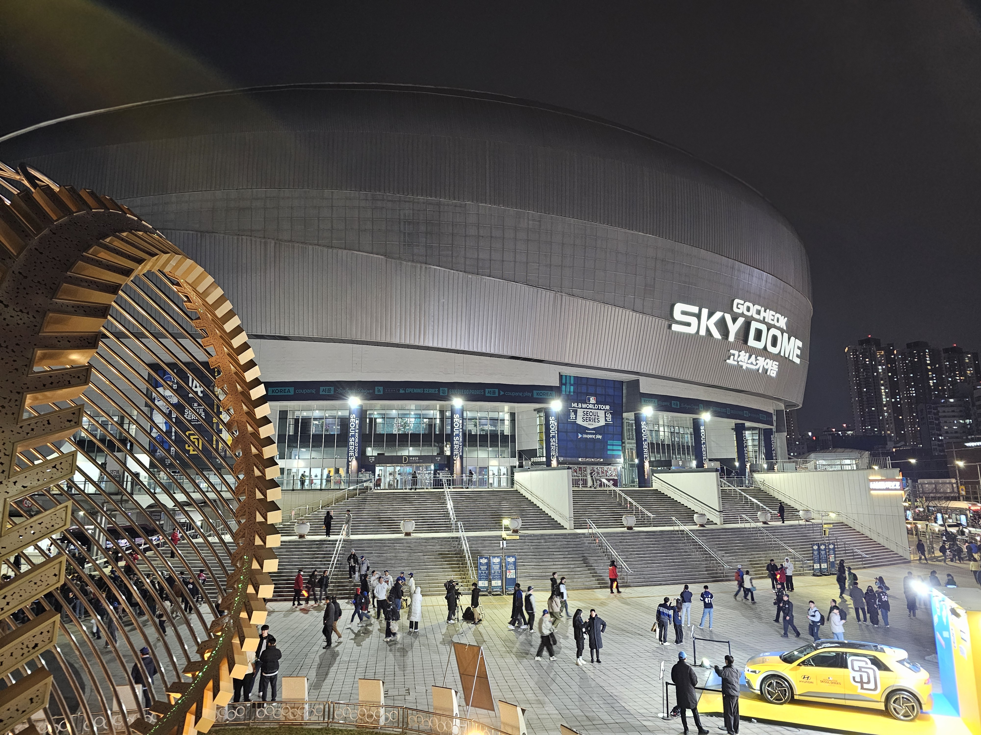 고척돔구장은 처음 가보는 건데. 생각보다 구장이 무척이나 협소한 것에 놀랐다. 지금까지 가본 야구장 중에서 가장 작을 듯. 거기에 대중교통과의 접근성도 좋지 않고, 여러모로 어려움 끝에 어거지로 지은 구장이라는 느낌이 든다. 그럼에도 한국의 유일한 돔구장이니 이 곳에서 서울 시리즈를 할 수 밖에 없었겠지. 수용관객이 좀 많았으면 서울시리즈 티켓 구입에 성공할 수 있었을텐데 하는 아쉬움이 계속 든다. ㅠ